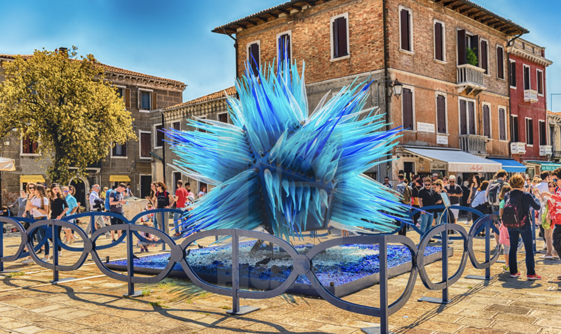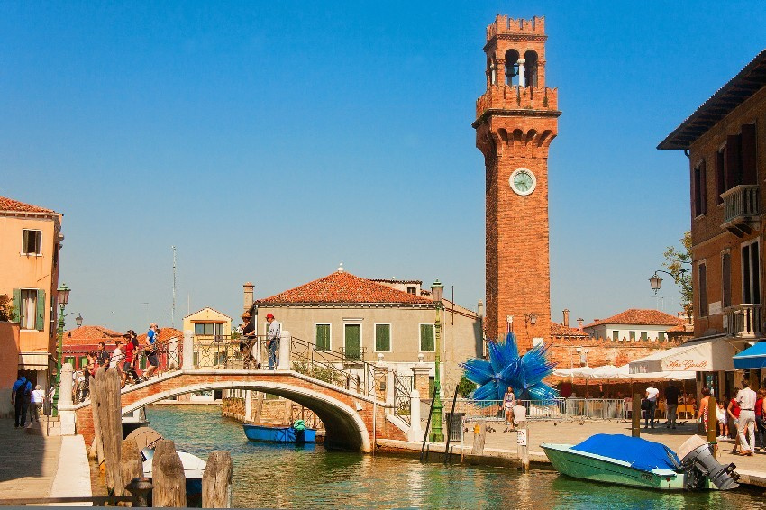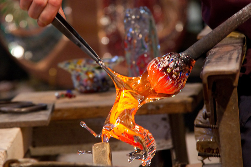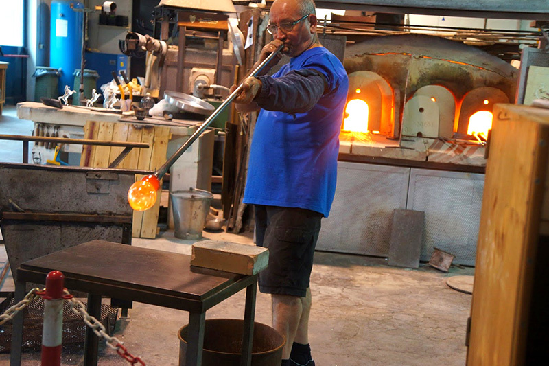 Majd áthajózunk Murano szigetére, ahol egy üvegműhelyben a szemünk láttára készíti el az üvegmester a becses portékáját. Nagyon nagy élmény látni, hogy a nagy múltú muránói üveg egy izzón folyó anyagból miként formálódik percek alatt csodálatos lóvá vagy virággá. Az üvegműhelyben sok érdekességet hallhatunk az üvegkészítés fortélyairól, Murano jellegzetességéről.