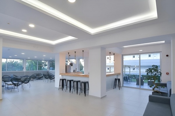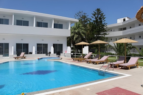 A modern szálloda közvetlenül a homokos tengerparton helyezkedik el, kb. 1,5 km-re Faliraki központjától. A közelben tavernák, éttermek, bárok és üzletek állnak rendelkezésre. A menetrend szerinti busz megállója a közelben, ahonnan Lindosba vagy Rodosz városba is könnyen el lehet jutni. A szállodától kb. 2,5 km-re található egy aquapark.