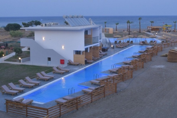 Fekvése: Az Evita Bay szálloda Falirakiban található, kb. 1,5 km-re a város központjától és csak néhány lépésre a tengerparttól. A hotel a rodoszi nemzetközi repülőtértől kb. 16 km-re, Rodosz várostól és a Mandraki kikötőtől kb.12 km-re, a Kalithea forrsától pedig kb. 2 km-re fekszik.
