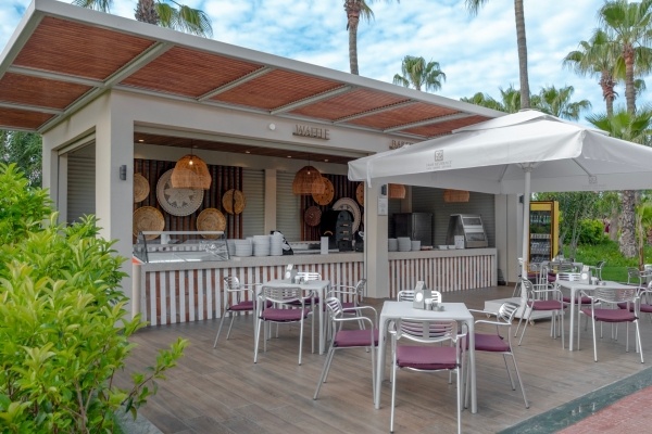 - All Inclusive: minden étkezés büférendszerben, éjszakai snack-ételek (leves, sütemények, gyümölcsök) 23:00 és 06:00 óra között, kávé, tea és palackozott üdítők reggelinél, helyi palackozott üdítők, sör, bor és egyes alkoholos italok ebédnél és vacsoránál, diétás, vegetáriánus és gyermekbüfé, a Fame kávézóban 11:00 és 08:00 óra között szendvicsek, desszertek, gyümölcsök (03:00 és 10:00 óra között alkoholos italok térítés ellenében), a török kávézóban 16:00 és 22:00 óra között török kávé és tea, fahéjas tea, a lobby-bárban 12:00 és 22:00 óra között péksütemények és desszertek, a strandbár 11:00 és 15:00 óra között meleg snack-ételek, gyümölcsök és zöldségek, helyi alkoholos és alkoholmentes italok 10:00 és 24:00 óra között az egyes bárokban (nyitvatartás szreint), kijelölt helyszíneken 11:00 és 17:00 óra között meleg snack-ételek, saláták, pizza, hamburgerek, gyümölcsök, 11:00 és 16:00 óra között hot dog, főtt kukorica, gofri, 17:00 és 18:00 óra között kebab, 11:00 és 15:00 óra között gözleme, 14:00 és 16:00 óra között fagylalt.
