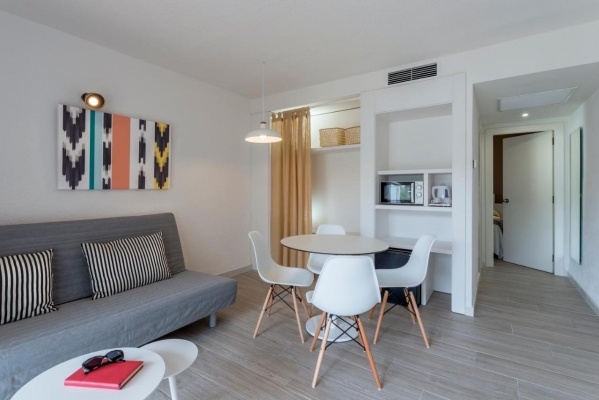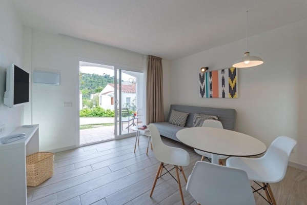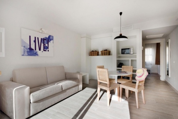 Lakosztály: 2 fő részére (1 vagy 2 pótágy lehetőség gyermekeknek), kb. 35 m?, hálószoba és külön ajtóval elválasztott nappali, felszereltsége megegyezik a standard szobáéval, továbbá mikrohullámú sütő, kávé/tea készlet; erkély vagy terasz (asztal, székek); kilátás a kertre vagy a medencére; a lakosztály felár ellenében foglalható.