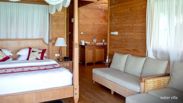 SZOBÁK: deluxe beach villa: 2 fős, kb. 27 m2, egyedi vezérlésű légkondicionálás, fürdőszoba (kád vagy zuhany, wc; hajszárító, kozmetikai készlet), vezeték nélküli internet, telefon, széf, kávé/tea készlet, minibár; terasz (asztal és székek);prémium tengerparti villa:2 fős, kb. 27 m2, felszereltség mint a deluxe tengerparti villában, plusz televízió; terasz (asztal és székek);water villa: : csak felnőtteknek (18+), 2 fős (1 pótágy lehetőséggel), kb. 37 m2, felszereltség mint a prémium tengerparti villában; terasz (asztal és székek), közvetlen kijárat a teraszról a tengerhez; szobák: prémium tengerparti villa és vízi villa felár ellenében.