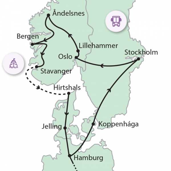 Oslót elhagyva a Mjosa-tó mentén haladunk. Hamarban láthatunk egy felfordított viking hajóra emlékezetető épületet. Lillehammerben a híres olimpiai sísáncot keressük fel. Ezt követően a csodaszép Gundbrandsdalen-völgyön haladunk keresztül, melyet gyorsfolyású folyók és vízesések tarkítanak. ?ndelsneshez érve egy fárasztó, de meseszép programot javaslunk. Gondolával fel tudunk menni a Nesaksla hegyre, vagy a Ramsdallépcsőn az 580 m magasságban lévő különleges kilátóhoz sétálunk fel. (Túracipő használata feltétlenül ajánlott). A kilátóról, jó idő esetén mesés a látvány az alattunk húzódó fjordra. Fárasztó, de egy életre maradandó élményt nyújtó program. Ezt követően elfoglaljuk szállásunkat.