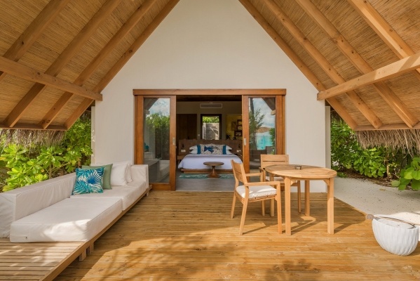 SZOBÁK: beach villa: 2 fő (1 pótágy lehetőséggel), kb. 96 m2, légkondicionált, fürdőszoba (kád vagy zuhany, wc; hajszárító, kozmetikai készlet), vezeték nélküli internet, kábeltelevízió, széf, vízforraló, minibár (fizetős); terasz (asztal és székek), közvetlen strandhozzáférés; vízi medence villa: csak felnőtteknek (18+), 2 fő (1 pótágy lehetőséggel), kb. 122 m2, berendezés mint a beach villa; terasz (asztal, székek, napozóágyak), saját medence; vízi medence villa felár ellenében.