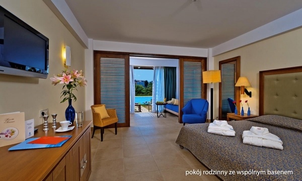 Kétágyas szobák pótágyazhatóak kb. 32 m?, saját fürdőszobával (fürdőszoba, hajszárító, WC), légkondicionálóval (05.20-09.30), SAT/TV-vel, telefonnal, erkéllyel vagy terasszal; WiFi a szobákban és a szálloda közös helyiségeiben kb. 30-50 EUR/hét díj ellenében, széf térítés ellenében (kb. 20 EUR/hét), Oldalról vagy közvetlenül tengerre néző szobák, junior lakosztályok vagy családi szobák felár ellenében vehetők igénybe. A szobák részben fák által takart tengerre vagy a szálloda területére néző kilátással rendelkezhetnek. A junior suite szobák közvetlen kilátással rendelkeznek a medencére, és egy tágasabb szobát jelentenek. A családi szoba kb. kb. 40 m? egy fő hálószobából és egy pótágyazható nappaliból áll, melyeket tolóajtók választanak el egymástól.