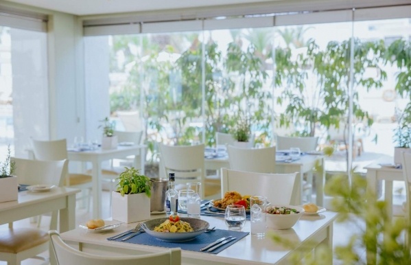 Étkezés: svédasztalos reggeli. Friss gyümölcsök, pékáruk, hideg és meleg fogások, tojásételek, zöldségek, joghurtok és különféle italok - kávé, tea, friss gyümölcslevek - teszik teljessé a kínálatot.. A félpanziós ellátás a reggelin kívül vacsorát is tartalmaz. A vacsora is svédasztalos formában zajlik, amely a nemzetközi és helyi ízek változatos kombinációját nyújtja. A vendégek helyi ciprusi specialitásokat is kóstolhatnak, valamint élvezhetik a tematikus estek változatos fogásait. A teljes ellátás a három főétkezést tartalmazza (a félpanzió + ebéddel egészül ki). Az all inclusive ellátás magában foglalja a napi három főétkezést - reggelit, ebédet és vacsorát -, amelyeket svédasztalos formában érhető el, nemzetközi és helyi ízek változatos kombinációját kínálja. Az étkezések mellé különféle italokat kínálnak, beleértve a helyi alkoholos italokat, borokat, valamint az alkoholmentes frissítőket is, amelyeket a korlátlanul fogyaszthatnak a vendégek 10-23 óra között. A vendégek emellett több bár közül választhatnak, ahol széles italválasztékot kínálnak. Az italválaszték a szálloda által meghatározott az itallapokon ALL jelöléssel található. Mind a reggeli, ebéd és vacsorák során kiemelt figyelmet fordítanak az ételek minőségére, frissességére, és igyekeznek minden ételallergiát vagy diétás igényt is kielégíteni. Napközben snackek és könnyű ételek is elérhetők, valamint jégkrémek, kávé és sütemények a délutáni órákban.