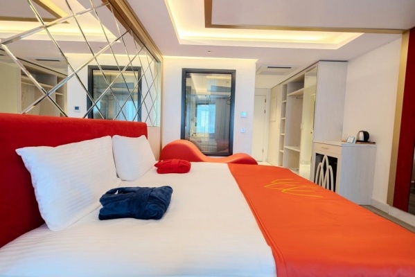 SZOBÁK: összesen 137 szoba o erkély o légkondicionálás o hajszárító o TV o telefon (térítés ellenében) o minibár (naponta feltöltve üdítőkkel, vízzel, sörrel és snackekkel) o fürdőköpeny és papucs o kávé- és teakészítő szett o széf o wifi o standard szobák: kb. 30-38 m?, max. 2 fő részére, jakuzzival, oldalról tengerre néző kilátással o deluxe szobák: kb. 30-38 m?, max. 2 fő részére, jakuzzival, tengerre néző kilátással o deluxe lakosztályok: kb. 45 m?, max. 2 fő részére, jakuzzival, oldalról tengerre néző kilátással