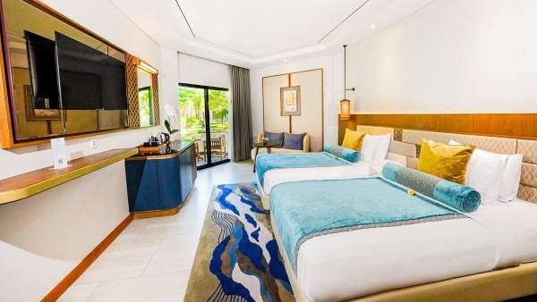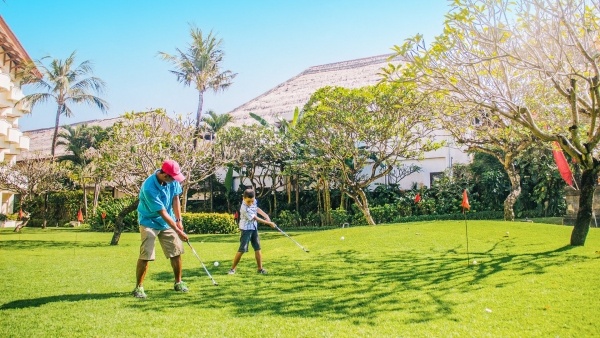 A szálloda Nusa Dua központjától mintegy 4 km-re, a nyugodt Tanjung Benoa negyedben található, közvetlen közelében egy élénk bevásárlóutcával, amely kényelmes lehetőséget kínál a sétára és a vásárlásra. A Bali National Golf Club körülbelül 5 km-re érhető el, míg Kuta nyüzsgő központja nagyjából 12 km-re, Denpasar városközpontja pedig 20 km-re fekszik. A vendégek kényelmét ingyenes szállodai buszjárat is szolgálja, amely Nusa Dua központjába közlekedik. A denpasari nemzetközi repülőtér hozzávetőleg 15 km-re található, így a megérkezés és az utazás is egyszerű és gyors.