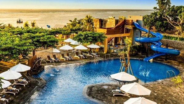 A szálloda Nusa Dua központjától mintegy 4 km-re, a nyugodt Tanjung Benoa negyedben található, közvetlen közelében egy élénk bevásárlóutcával, amely kényelmes lehetőséget kínál a sétára és a vásárlásra. A Bali National Golf Club körülbelül 5 km-re érhető el, míg Kuta nyüzsgő központja nagyjából 12 km-re, Denpasar városközpontja pedig 20 km-re fekszik. A vendégek kényelmét ingyenes szállodai buszjárat is szolgálja, amely Nusa Dua központjába közlekedik. A denpasari nemzetközi repülőtér hozzávetőleg 15 km-re található, így a megérkezés és az utazás is egyszerű és gyors.