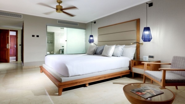 A kertre néző kétágyas deluxe szobából Punta Cana jellegeztes pálmafáiba gyönyörködhetünk.