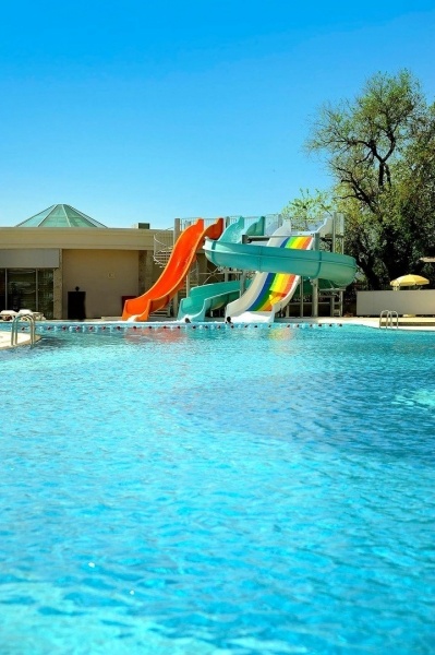? úszómedence, édesvíz, kb. 1200 m?, mélység 1,4 m, csúszda