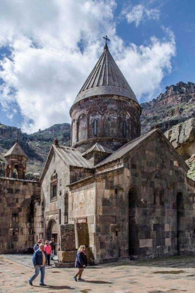 Ezt követően utazás az UNESCO Világörökség részéhez tartozó, csodálatos természeti környezetben fekvő, nagyrészt sziklába vájt Geghard apátsághoz. Az építmény bejárata három oldalról magas falakkal körülkerített, míg negyedik oldalról a hegy védi. A kápolnák és lakóhelyiségek között egy forrás is megbújik.