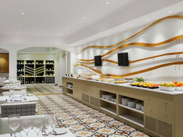 Ellátás: o La Oliva étterem: A La Oliva étterem tágas és világos termekkel várja, ahol modern és kiváló minőségű ételek kóstolhatnak. Az étterem svédasztalos reggelit szolgál fel, ebédre pedig könnyű szezonális fogásokat kínálnak. Vacsoránál előételeket, főételeket svédasztalról, de egyes főételeket étlapról is választhatnak. Az étterem kellemes terasszal rendelkezik. o Velvet Bar: Meghitt hangulatú koktélbár, tökéletes helyszín olvasásra, beszélgetésre. Teraszáról közvetlen elérhető a medence. o La Terasse medencebár: A medence mellett élvezheti a könnyed harapnivalókat, italokat.