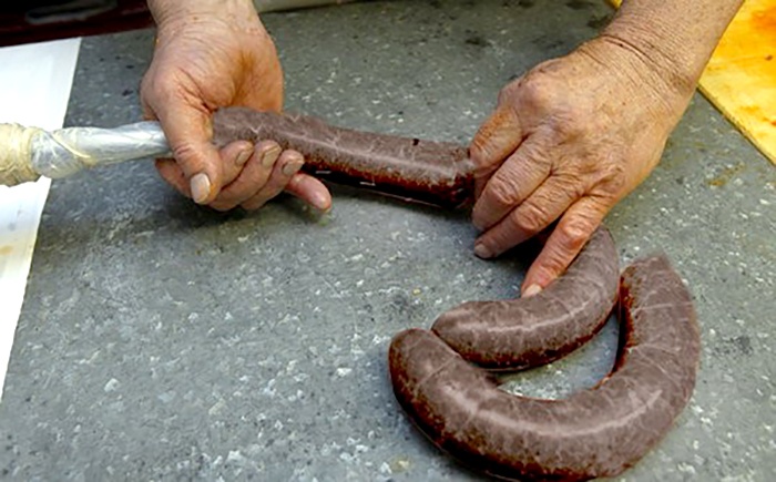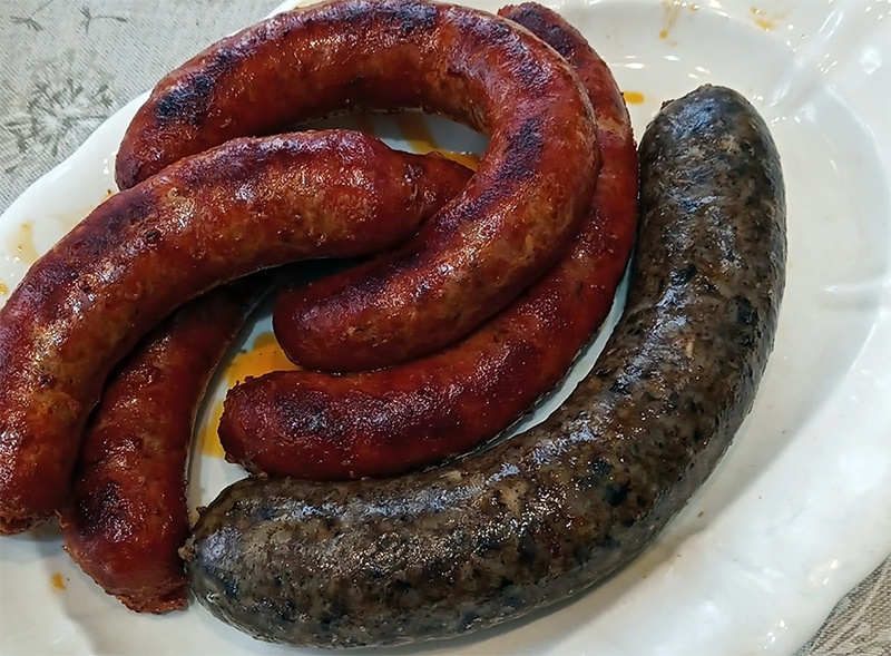 - Véres-, májas hurka, kolbász, sült hús, puliszka és olajos savanyú káposzta