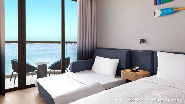 SZOBA: alapértelmezett: 2 fő (1 pótágy lehetséges), kb. 28 m?, egyedileg szabályozható klíma, fürdőszoba (zuhanyzó, wc; hajszárító), műholdas TV, telefon, kávé/teás készlet, széf; felár ellenében: vezeték nélküli Internet, minibár; ingyenes kiságy 2 éves korig érkezés előtti megrendelésre; erkély (asztal és székek), kilátással a tengerre.