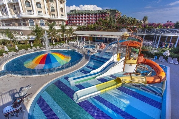 Szolgáltatások: Éttermek, bárok, medencék (van fűthető medence a téli szezonban), csúszdák, aquapark, spa és wellness szolgáltatások (törökfürdő, szauna, gőzfürdő, jakuzzi, masszázs, testkezelések), fitneszterem, asztalitenisz, bowling, biliárd, darts, boccia, strandröplabda, aerobic, yoga, zumba, sakk, backgammon, vízilabda, vízi sportok a tengerparton, WiFi csatlakozási lehetőség, konferenciaterem, amfiteátrum, orvosi ügyelet, mosoda, fodrászat, animációs és szórakoztató programok, disco, gyermekmedence, gyermekklub, gyermekfelügyelet, mini disco, játszótér, napágyak és napernyők. Egyes szolgáltatásokat csak külön térítés ellenében vehetnek igénybe a nyaralók!