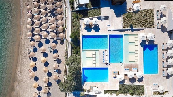 a szálloda az enyhén lejtős partszakaszú, homokos és kavicsos nyilvános, Kék-Zászló kitüntetéssel is rendelkező strandtól csak néhány lépésnyire, kb. 150 m-re található; fürdő cipő/biztonsági lábbeli mindenképp ajánlott;