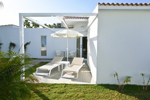 Elhelyezés: o Standard bungaló: Alapterület: 34 m2 Kilátás: Kert vagy kert/medence Felszereltség: nappali kanapéval, hálószoba franciaággyal vagy 2 külön ággyal, ingyenes kiságy (kérésre), fürdőszoba (zuhanyzó, hajszárító, pipere termékek), konyhasarok (kis hűtő, mikrohullámú sütő, kávéfőző, vízforraló), széf (felár ellenében), légkondicionálás/fűtés, Smart-TV, terasz. o Superior bungaló: Alapterület: 40 m2 Kilátás: Kert vagy kert/medence Felszereltség: nappali kanapéval, hálószoba franciaággyal vagy 2 külön ággyal, ingyenes kiságy (kérésre),fürdőszoba (zuhanyzó, hajszárító, pipere termékek), konyhasarok (kis hűtő, mikrohullámú sütő, kávéfőző, vízforraló), légkondicionálás/fűtés, széf (felár ellenében), Smart-TV, kertkapcsolatos terasz o Superior stúdió: Alapterület: 30 m2 Kilátás: Kert vagy kert/medence Felszereltség: nappali kanapéval, hálószoba franciaággyal vagy 2 külön ággyal, ingyenes kiságy (kérésre), fürdőszoba (zuhanyzó, hajszárító, pipere termékek), konyhasarok (kis hűtő, mikrohullámú sütő, kávéfőző, vízforraló), légkondicionálás/fűtés (felár ellenében), Smart-TV, terasz o Junior lakosztály - csak felnőttek részére: Alapterület: 42 m2 Kilátás: Kert vagy kert/medence Felszereltség: nappali kanapéval, hálószoba franciaággyal vagy 2 külön ággyal, ingyenes kiságy (kérésre), fürdőszoba (zuhanyzó, hajszárító, pipere termékek), konyhasarok (kis hűtő, mikrohullámú sütő, kávéfőző, vízforraló), légkondicionálás/fűtés, széf (felár ellenében), Smart-TV Extra: gardrób szoba, terasz közvetlen medencekapcsolattal, Wi-Fi elérés az ,,adults only"közösségi területeken o Superior junior lakosztály - csak felnőttek részére: Alapterület: 48 m2 Kilátás: Kert vagy kert/medence Felszereltség: nappali kanapéval, hálószoba franciaággyal vagy 2 külön ággyal, ingyenes kiságy (kérésre), fürdőszoba (zuhanyzó, hajszárító,pipere termékek), konyhasarok (kis hűtő, mikrohullámú sütő, kávéfőző, vízforraló), légkondicionálás/fűtés, széf, Smart-TV Extra: gardrób szoba, privát kertkapcsolatos terasz, privát medence, Wi-Fi elérés az ,,adults only" közösségi területeken o Lakosztály - csak felnőttek részére: Alapterület: 52 m2 Kilátás: Kert vagy kert/medence Felszereltség:külön légterű nappali (kanapéval) és hálószoba (franciaággyal vagy 2 külön ággyal), ingyenes kiságy (kérésre), fürdőszoba (zuhanyzó, hajszárító, pipere termékek), konyhasarok (kis hűtő, mikrohullámú sütő, kávéfőző, vízforraló), légkondicionálás/fűtés, széf, Smart-TV Extra: gardrób szoba, privát kertkapcsolatos terasz, privát medence, Wi-Fi elérés az ,,adults only" közösségi területeken