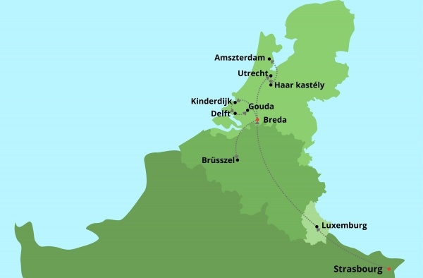 Reggel rövid városnézés Strasbourgban: katedrális, Petit-France negyed, a híres favázas házak, majd utazás Luxemburgba, városnézés: Nagyhercegi Palota, Miasszonyunk templom. Szállás Antwerpen környékén.