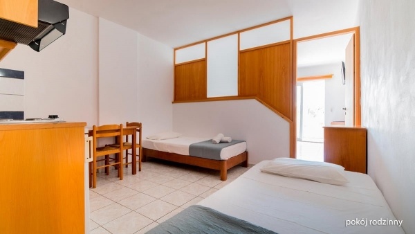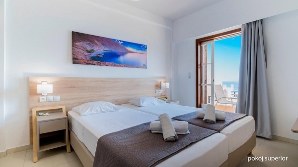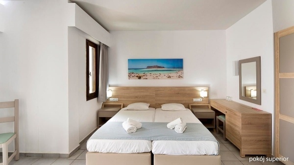 Kétágyas kertre vagy Kétágyas tengerre néző szobák: 2 ágyas (1 fővel pótágyazható) kb. 23 m? egyénileg szabályozható légkondicionálás fürdőszoba (fürdőkád vagy zuhanyzó, WC) hűtőszekrény műholdas televízió széf ingyenes kiságy 2 év alatti gyermek számára, érkezés előtt kérésre. erkély vagy terasz (asztal és székek) térítés ellenében: vezeték nélküli internet-hozzáférés (kb. 3 EUR/nap)