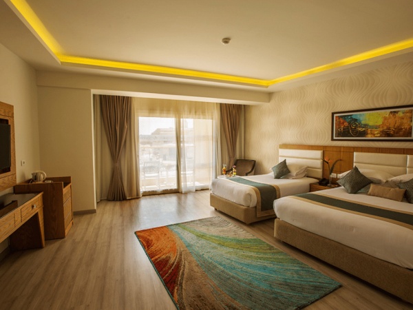Az 558 szoba a kétemeletesépületekben helyezkedik el. A szálloda részét képezi a medencés-lagúnás kert, mely akár vízibiciklivel is bejárható. Ez a modern 4 csillagos szálloda a kb. 133.905 m 2 -en elterülő AQUA PARK CITY része, ahol vízipark, egy 450 méter hosszú sétány kávéházakkaléséttermekkel, bazár, disco, egy kisüzletés egy pékség is található. Az impozáns hotelben recepció, internet hozzáférés (térítés ellenében), pénzváltó automata, 4étterem, 1á la carteétterem, különböző bárok,üzletekés fodrászatüzemel, valamint 9édesvizű medence, napozóteraszés medencebár. A napozóágyak, a törölközők,és a napernyők használata a medencénélés a tengerparton ingyenes. A szálloda egész területén a WIFI használata díjmentes.