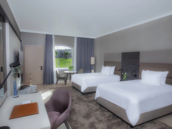 SZOBÁK A komplexum 151 Deluxe szobából, 86 Executive Suites, 7 Presidential Suitesáll egy szinten. Minden szoba ingyenes Wi-Fi-vel felszerelt. Ezen kívül minden szobában olyan kényelmi szolgáltatásokállnak rendelkezésre, mint például tea-és kávékészlet, a minibárt napontaüdítőkkelés vízzel is díjmentesen feltöltik., kád vagy zuhanyzóés légkondicionáló is rendelkezésreáll. A deluxe kétágyas szobák(DZX) 60 m² Kertre nyíló kilátással.Executive kétágyas lakosztályok is rendelkezésreállnak(DEX) 90 m² Tágas lakosztály 1 hálószobával, 1 káddal ellátott fürdőszobával,ülősarokkalés terasszal, ahol a vendégek pihenhetnek. A légkondicionált lakosztály TV-vel, hangszigetelt falakkal, minibárral, tea-és kávéfőzővel, valamint kertre néző kilátással rendelkezik. A szálláson 1 franciaágy található.