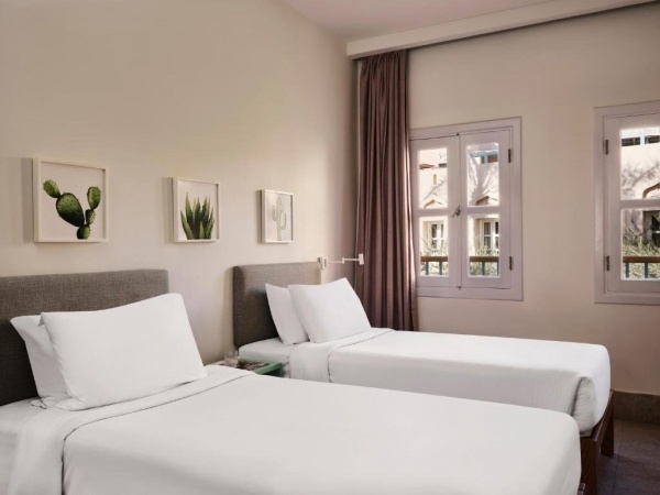 Standard kétágyas szoba (DZ) 16 m² Légkondicionált szoba udvarra vagy utcára néző kilátással, műholdas TV-vel, minibárralés iratszéffel, valamint zuhanyzóvalés hajszárítóval felszerelt fürdőszobával.