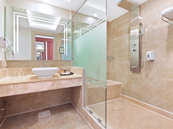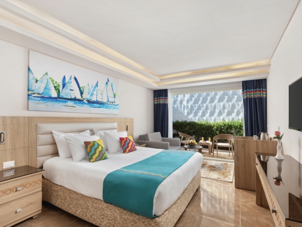 SZOBÁK: MindenSTANDARD szoba (34 m²)káddalés zuhanyzóval, WC-vel, hajszárítóval, telefonnal, széffel, műholdas síkképernyős TV-vel, WiFi-vel (térítés ellenében), minibárral, vízforralóval, légkondicionálóvalés erkéllyel vagy terasszal rendelkezik. Foglalható kertre néző, medencére néző vagy részben vagy egészben tengerre néző kilátással is.