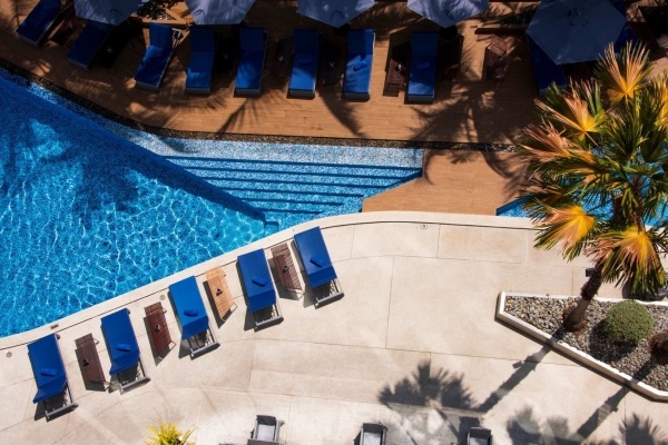 Deluxe medencére néző 2 fős szoba: (1 pótágy lehetőséggel) kb. 37 m2, klimatizált, nyitott fürdőszoba (zuhanyzó, WC, hajszárító), vezeték nélküli internet, televízió, telefon, kávé-/teáskészlet, kis hűtőszekrény, erkély (asztal és székek), medencére néző kilátás, felár ellenében: széf, minibár (fogyasztás szerint fizetendő).
