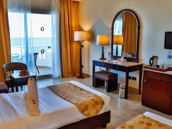 ELLÁTÁS: A félpanziós ellátás svédasztalos reggelités vacsorát tartalmaz. Coral Sun Beach területén 2étterem található: Corallo (Olasz konyha) és a The Palms (nemzetköziételekkel).