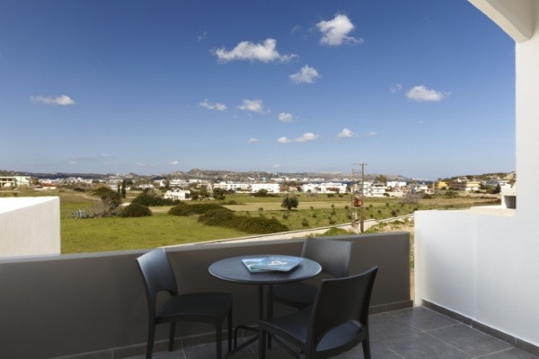 A település központjától kicsit távolabb (kb. 1,5 km), csendes környezetben épült, háromszintes, 136 szobás, modern hotel, nagy kerttel, pálmafákkal, mediterrán növényekkel. A kedvelt Mandomata beach (naturista), strand kb. 400 m-re (táblával is jelezve a legközelebbi megközelítési lehetőség), valamint a homokos/köves tengerpart (Kathara beach) vízi sport lehetőségekkel kb. 800 m-re található. Egy kellemes sétával tavernák, kávézók, vendéglők, üzletek könnyen elérhetők.