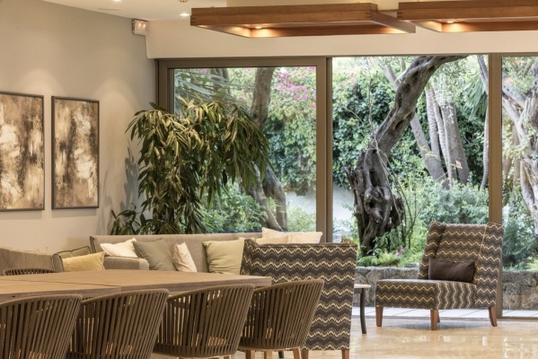 - Recepció, éttermek helyi és nemzetközi fogásokkal (Horizon büfé étterem, 2018-ban megnyílt Paréa étterem, Marina étterem grill ételekkel, gyrosszal, pizzával, míg az Asterias étterem mediterrán kulináris fogásokkal várja vendégeit), bárok (Panorama, Allegro). Egzotikus kertjében tengervizes felnőtt medence, édesvizes gyermekmedence, melyek körül ingyenes napágy és napernyő, valamint játszótér találhatóak. A vendégek aktív kikapcsolódását belső fűtött medence, jacuzzi, 2 szauna, hammam, fitneszterem, asztalitenisz, strandröplabda, két teniszpálya szolgálja. Ingyenes WIFI a közösségi helységekben és a szobákban is. Naponta változatos animációs és egyéb szórakoztató programok, folklór est, élő zene, kölyök klub, vízi aerobik.