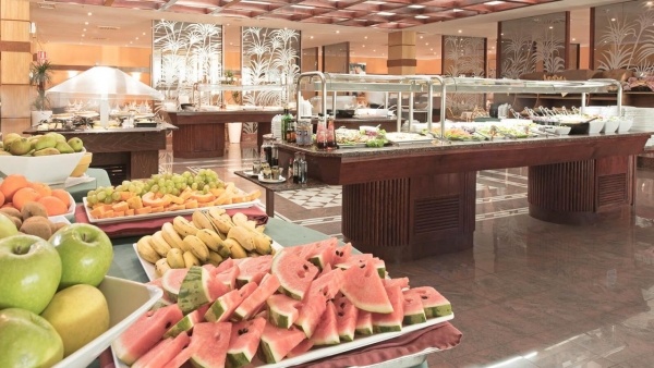 A reggelit a svédasztalról kínálják. Az ebédet és a vacsorát szintén a büféből szolgálják fel. A testi jólétről a medencebár gondoskodik.