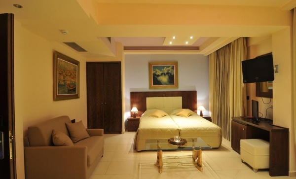 Közvetlenül a tengerparton épült háromcsillagos hotel, mely Paralia központjában található.