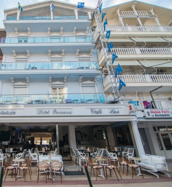 Közvetlenül a tengerparton épült háromcsillagos hotel, mely Paralia központjában található.