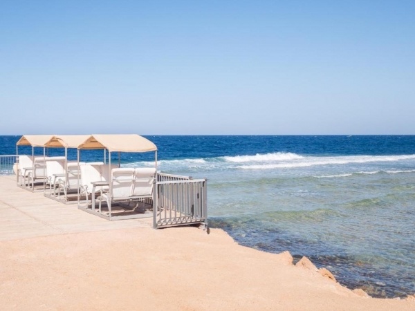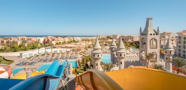 Serenity Alma Heights - Ex Serenity Fun City Resort mindössze 500 méterre található a tengerparttól transzferjárattal. Hurghada központja körülbelül 35 km-re található, a szálláshelyen közös strand (sziklás strand korallzátonyokkal) található a testvérszállodával.