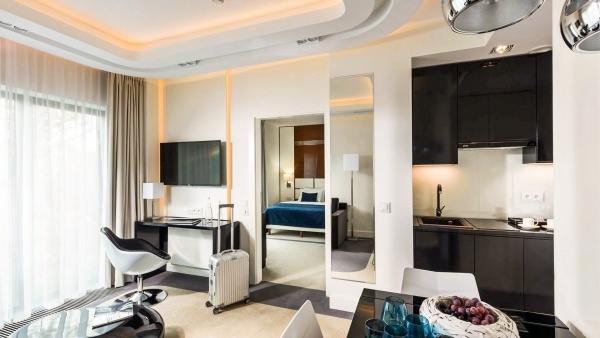 Apartman: 2 fő részére, 1 pótágy lehetőséggel, kb. 35 m?, légkondicionált, fürdőszoba zuhanyzóval, WC-vel, hajszárítóval és kozmetikai készlettel. Felszerelt konyhasarok, külön hálószoba és nappali, ajtóval elválasztva. Vezeték nélküli internet, kábeltelevízió, telefon, széf, kávé-/tea-készlet. Minibár fogyasztás szerint, díj ellenében.