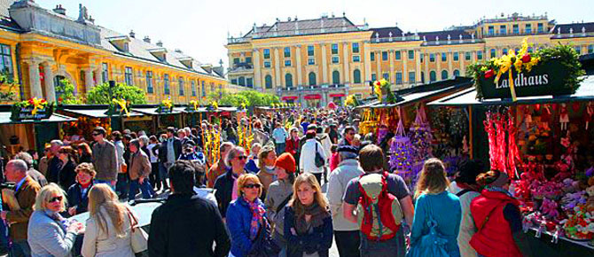 A csokigyár-látogatás után tovább folytatjuk utunkat Bécs felé, ahol elsőként elsőként a Schönbrunni kastély előtt évről évre megrendezésre kerülő hagyományos húsvéti vásárt tekintjük meg, melyet az egyik legromantikusabb húsvéti vásárnak tartanak. Ez Ausztria egyik legismertebb műemléke és turisztikai látványossága: magát a kastélyt évente másfélmillió látogató keresi fel, a hatalmas és lenyűgöző császári palota parkját pedig több milliónyian tekintik meg, ahol többek között akár mókus etetésre is nyílhat lehetőség!