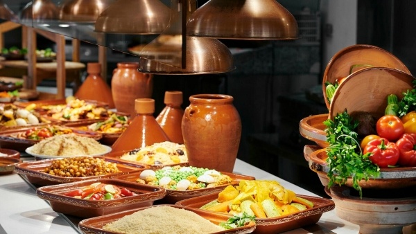A szállodában a Mercure főétterem büfé jellegű kínálattal várja a vendégeket, helyi és nemzetközi ételekkel, míg az Antares ? la carte étterem a marokkói konyha ízeit kínálja. Három bár szolgálja a vendégek kényelmét. Az all inclusive ellátás keretében a reggeli 7.00-10.00, az ebéd 12.30-14.30, a vacsora pedig 19.00-22.00 óra között fogyasztható a Mercure étteremben büfé formájában. A snackbárban 12.00 és 15.30 között könnyű falatok érhetők el, míg a kijelölt bárokban 10.00 és 24.00 óra között alkoholmentes és helyi alkoholos italok fogyaszthatók. Az all inclusive szolgáltatások igénybevételéhez a karszalag viselése kötelező.