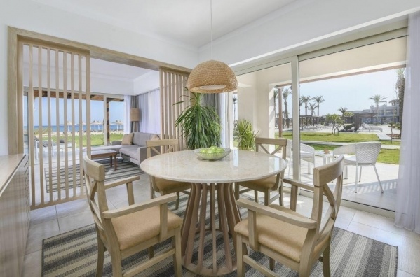 Az elegáns szálloda közvetlen a híres Marsa Mubarak-öbölben található, amely a teknősök és a dugongok lehetséges felbukkanásáról ismert, ezért különösen jó választás a búvárkodás szerelmesei számára.