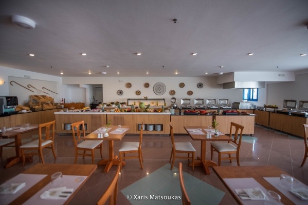A szálloda félpanziós ellátást kínál, amelyet svédasztalos formában szolgálnak fel az étteremben, friss helyi alapanyagokból. A vendégek napközben a medencebárban fogyaszthatnak frissítő italokat és könnyű harapnivalókat. A környéken számos taverna és étterem található, ahol a hagyományos krétai és nemzetközi konyha ízei is felfedezhetők.