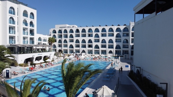 Az elegáns szálloda központi helyen fekszik, a kedvelt Kusadasi központjától kb. 2,5 km-re, közvetlenül a saját homokos strandján. Éttermek, bárok és üzletek sétatávolságra. Kitűnő választás családi nyaraláshoz.