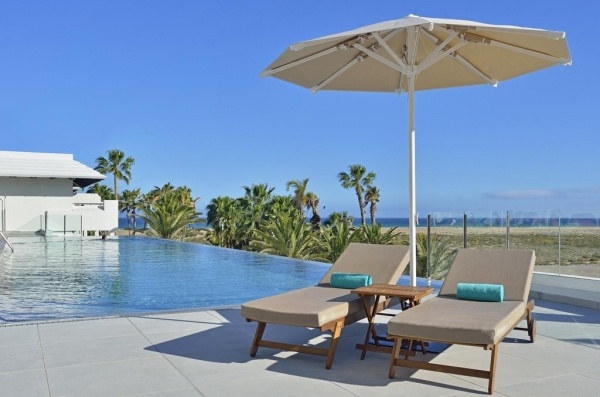 Fekvés: Fuerteventura szigetének déli részén helyezkedik el a különleges szálloda. A hotel közvetlen az Atlanti-óceán partján fekszik, mégis 100 méterre a víztől és strandtól, a kettőt Fuerteventurára jellemző arany homok választja el. Az idilli Sotavento strand a Jandía természeti parkban fekszik, a szállodából lenyűgöző kilátásban lehet része.
