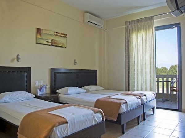 - 2-3 ágyas stúdiók: igényesen berendezett stúdiók privát terasszal, melyek tenger vagy Olymposz felé vagy belső udvarra néznek, illetve ahol a konyhasarok és az ágyak egy légtérben vannak. A stúdiók légkondicionálóval (felár a helyszínen fizetendő, 42 EUR/készülék/hét), sat-tévével, minihűtővel, konyhasarokkal - mely a legszükségesebb eszközökkel felszerelt -, és zuhanyzós fürdőszobával rendelkeznek.