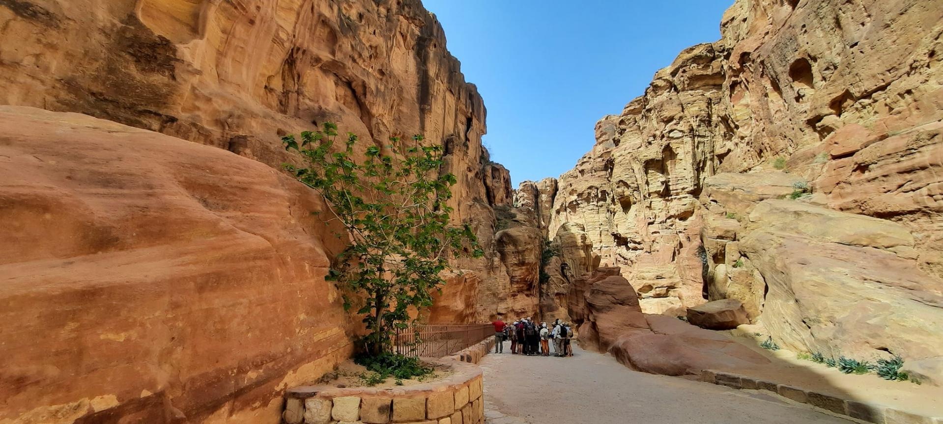 Érkezés Petrába, kirándulás a rózsa vörös sziklába vájt városban. Hatalmas ősi kanyonok fedezékében található Jordánia egyik leggyönyörűbb városa, a nabateus arabok egykori fővárosa, Petra. A világörökség része, melyet a Közel-Kelet egyik legnagyobb látványosságaként tartanak számon. Az egy kilométeres gyalogút végén elénk tárul a vörös homokkőbe vájt, mintegy 40 méter magas, szinte égbe nyúló "Khaznat al-Faraun", a Fáraó Kincstára. A kincstár szobrait, falfülkéit és oszlopait valószínűleg az ókori görögök emelték. Jordánia eme gyönyörű városának szívében, római kori romok lenyűgöző látványa tárul fel. A letűnt korokat idézi, a hatalmas színház is, melynek 33 lelátó-sora több mint 3000 nézőt fogadott be. Szintén a rómaiak emelték a 2. században a Petra forgalmas központján végigfutó oszlopokkal szegélyezett utat, melyet egykoron piaci árusok népesítettek be. Vacsora és szállás Petrában.