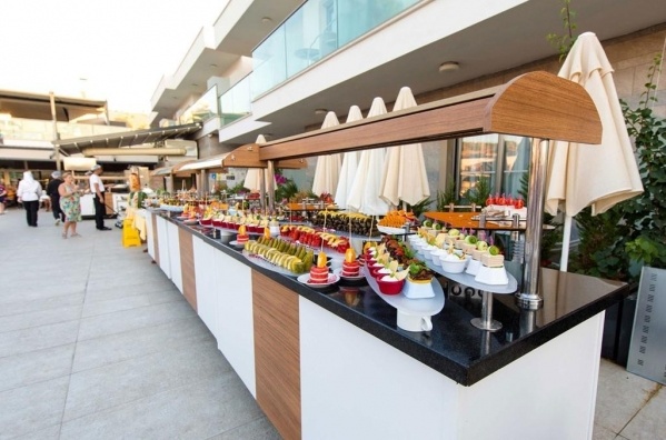 - All Inclusive: minden étkezés büférendszerben, snack-ételek a snack-bárban 14:30 és 16:30 óra között, délután tea és kávé a főétteremben 17:00 és 18:00 óra között, éjféli leves a főétteremben 00:00 és 00:30 óra között, helyi alkoholos és alkoholmentes italok a Jasmin pool-bárban és az Aquarium bárban 10:00 és 23:00 óra között, a Panorama bárban 10:00 és 18:00 óra között, vacsorázni tartózkodásonként 1x az a'la carte-étteremben is lehet 19:30 és 21:30 óra között (előzetes foglalás szükséges).