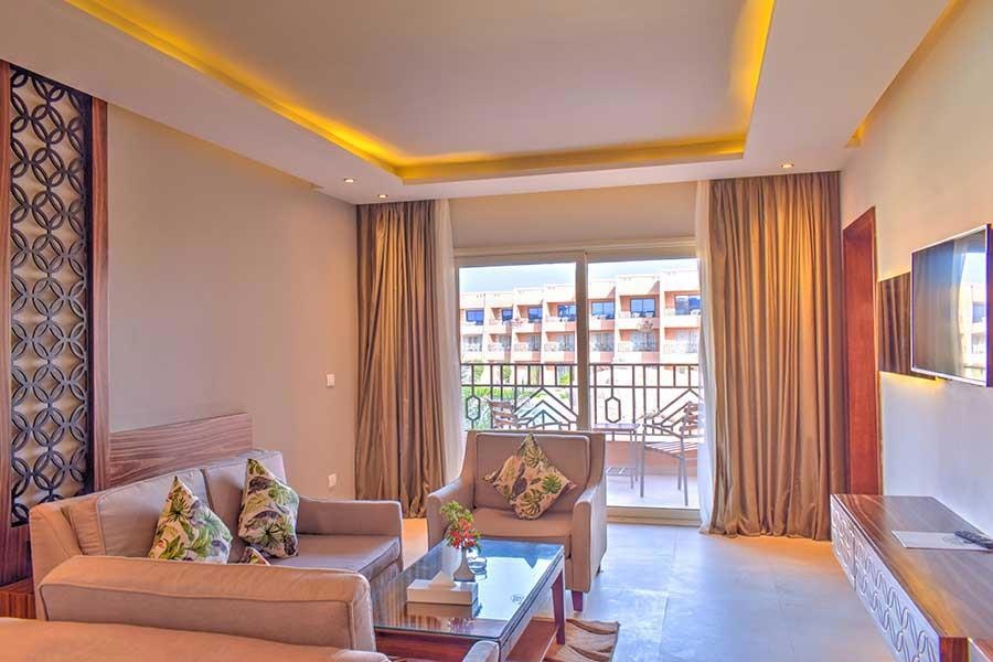 SZOBÁK: 547 szoba • légkondicionáló • erkély vagy terasz • műholdas TV • telefon • hajszárító • széf • minibár (naponta vízzel feltöltve, ingyenesen) • standard szobák: kb. 33 m², kilátással a kertre, medencére vagy tengerre • családi szobák: kb. 65 m², két hálószoba, kilátással a kertre, medencére vagy tengerre • superior szobák: kb. 33 m², kilátással a kertre vagy medencére • superior családi szobák: kb. 65 m², két hálószoba, kilátással a kertre, medencére vagy tengerre