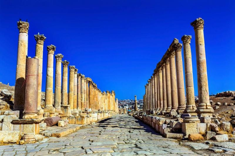 Elutazás Budapestről a kora reggeli órákban, utazás közvetlen járattal, érkezés Ammanba délelőtt. Az érkezést követően kirándulni indulunk Ammantól északra. Ellátogatunk Jerash ősi római kori városába, ahol megcsodálhatjuk a meglepően jó állapotban fennmaradt épületeket. A legfontosabbak: Hadrianus diadalíve, Zeusz temploma, az Északi és Déli színházak, az Ovális fórum, Artemisz temploma, az Északi és Déli kapu, a Cardo Maximus és a Nymphaneum. Délután transzfer a szállodába, vacsora és szállás Ammanban (1 éj).