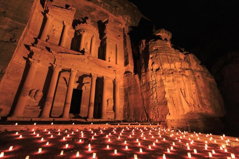 Az egész napot Petra felfedezésével töltjük. Az 1 km hosszú sziklahasadékon keresztül haladva érjük el a nabateusok egykori fővárosát, megcsodáljuk a vörös sziklából kifaragott város monumentális templomait, színházait, síremlékeit és lakóházait. Este fantasztikus élmény vár a csoportra, megcsodálhatjuk a gyertyákkal megvilágított ókori város látványát a Petra by night program keretén belül.