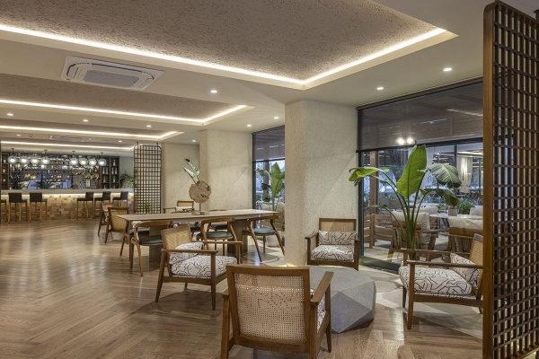 A szállodának 150 méterre egy privát hosszú homokos strandja van, sziklákkal.